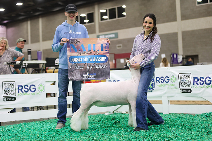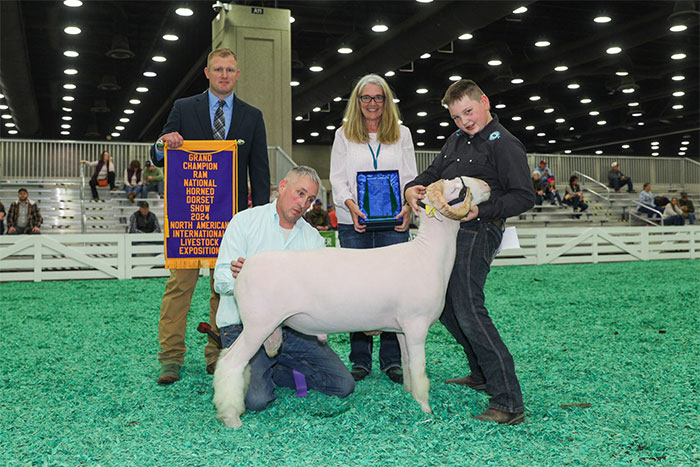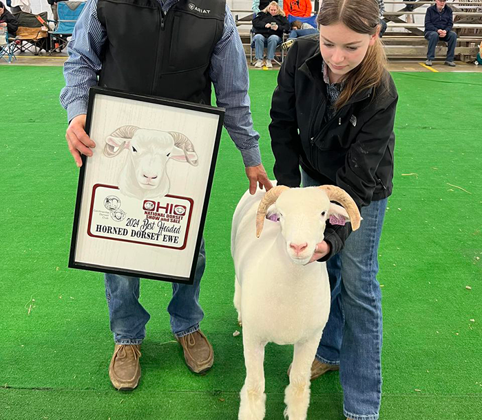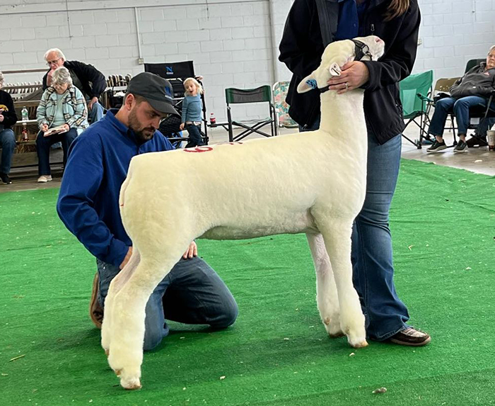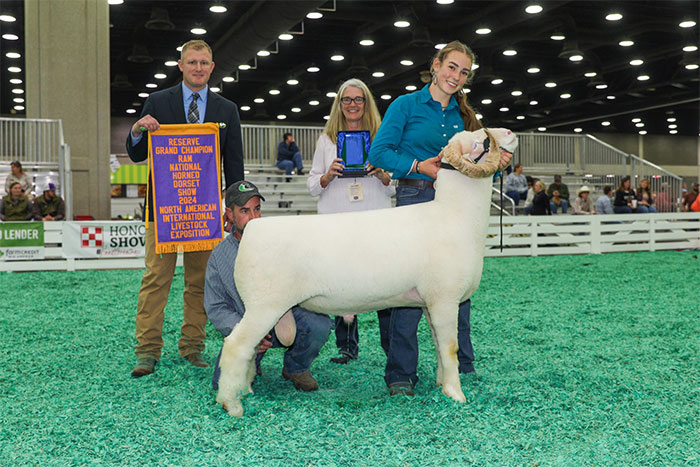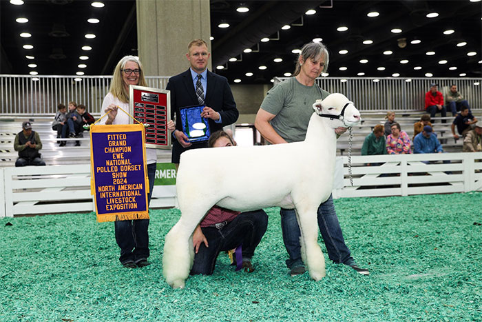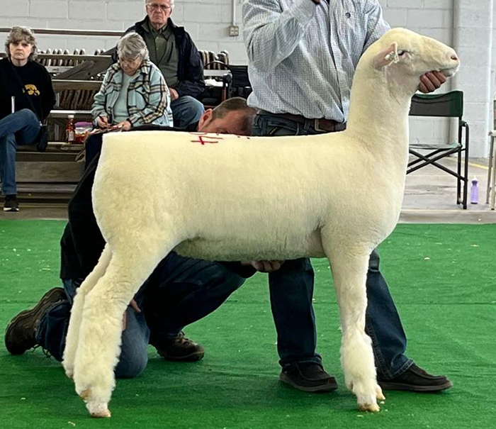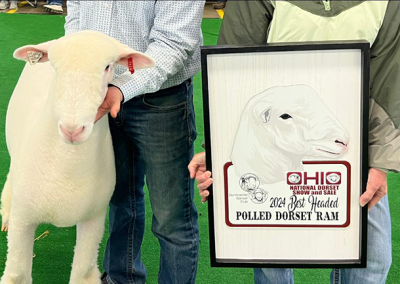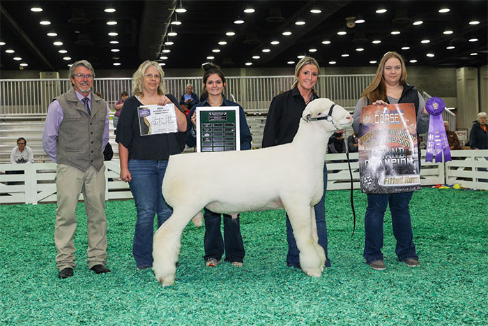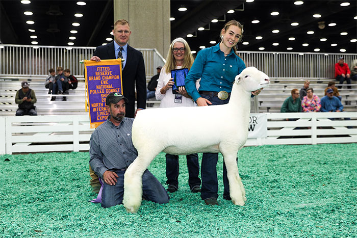 Reserve Grand Champion Polled Ram, Reserve Senior Champion, Fitted Spring Yearling – Spilde Dorsets, WI